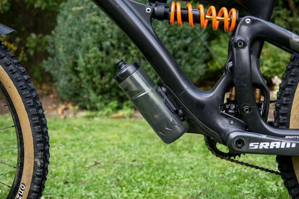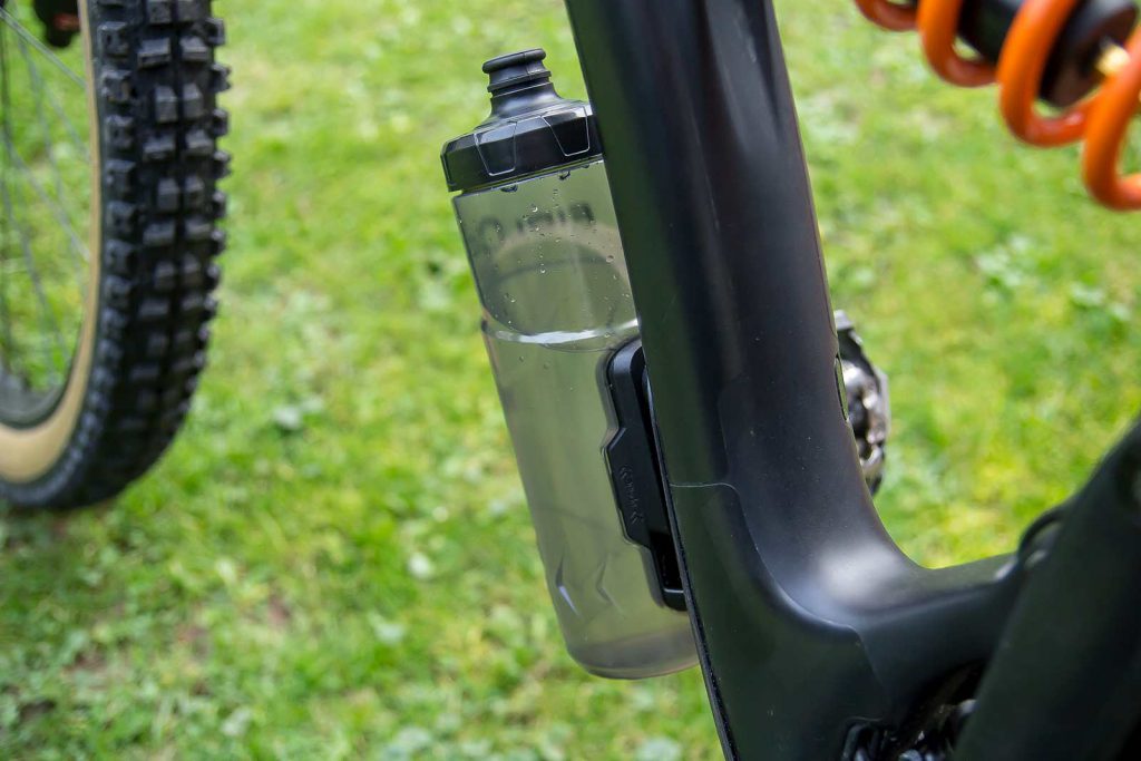 Leider ist es der Bauweise des Yeti SB6 geschuldet, dass sich der Trinkflaschenhalter nur unter dem Rahmen befestigen lässt. Daher ist es nicht gerade einfach, während der Fahrt an seine Trinkflasche zu kommen. Bei unserem Conway WME war dies dann doch erheblich einfacher. Allerdings ist die Fidlock Flasche nur für Rechtshänder geeignet.