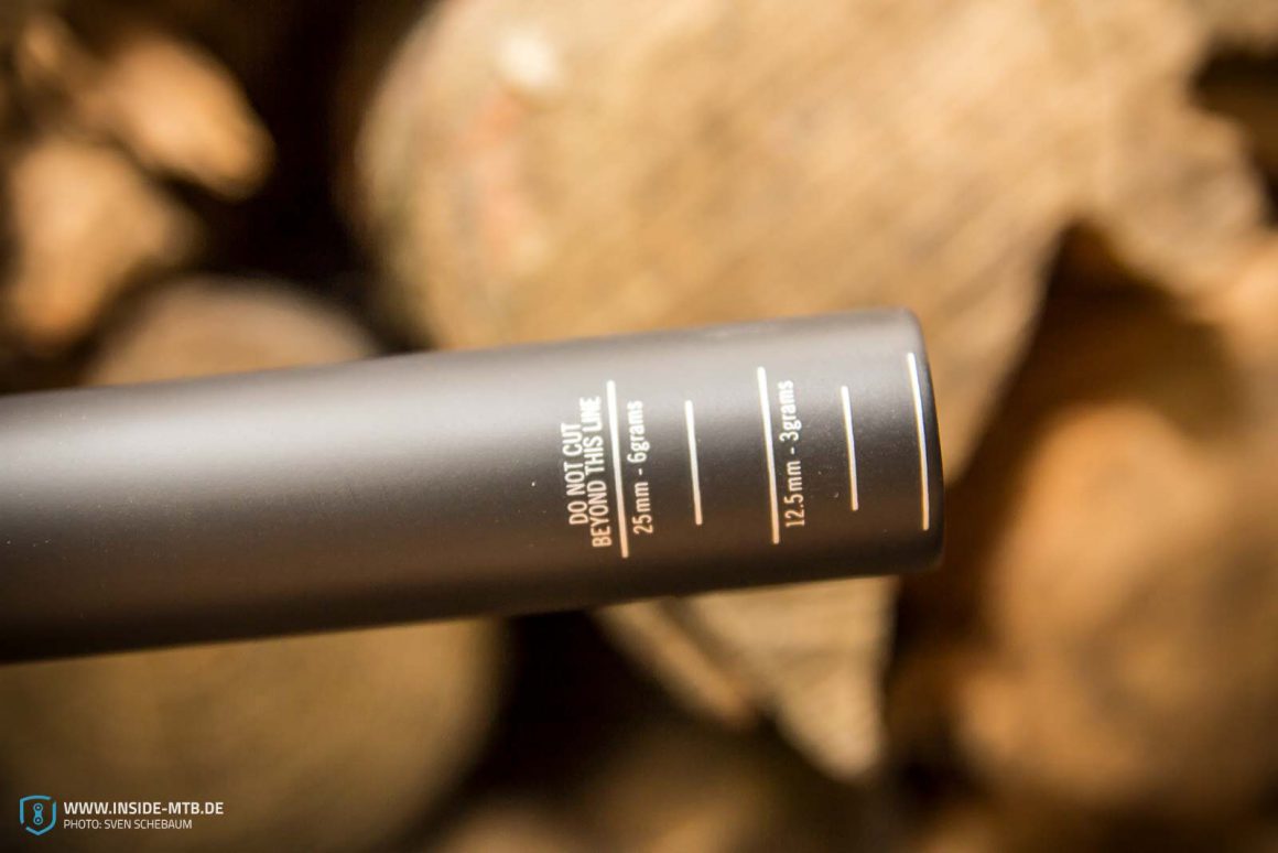 Für Leute, die es weniger breit, als die 800mm, mögen gibt Race Face die passenden Markierungen dabei. Race Face geizt hierbei nicht mit Design Decals und Beschreibungen.