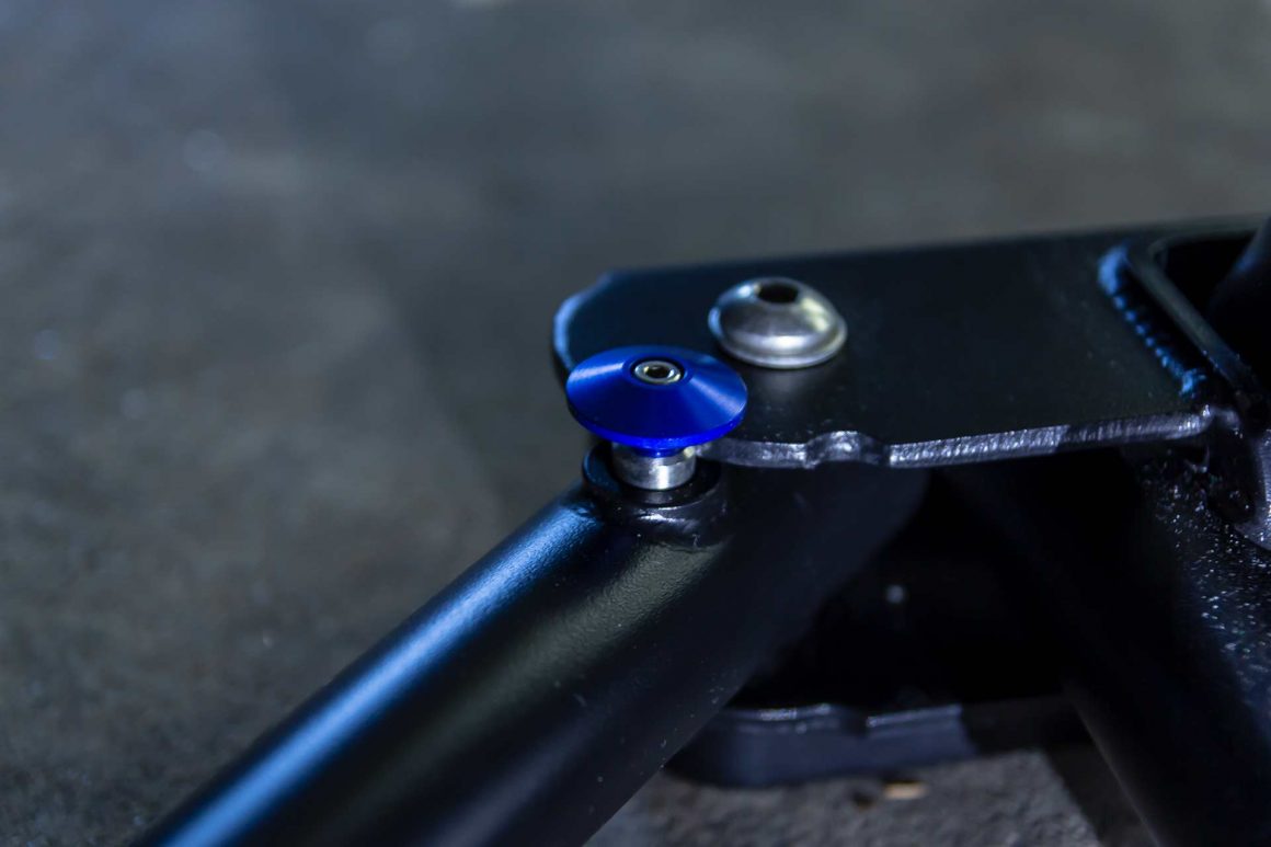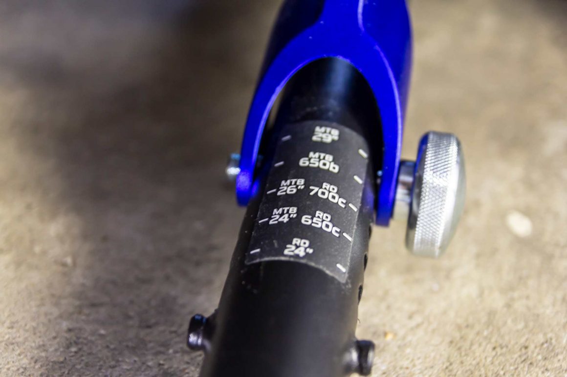 Im direkten Vergleich zum Kickr Core bietet der Wahoo Kickr 2018 ein nettes Feature: Man kann direkt die Höhe des Hinterrades einstellen, so dass die Ergonomie gehalten bleibt. Dazu wird die Schraube aus dem Gewinde entfernt, der entsprechende Slot eingestellt und wieder eingeschraubt.