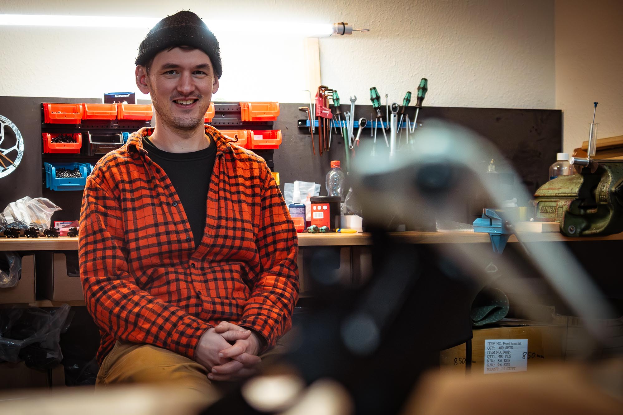Die Räumlichkeiten von Intend sind überschaubar – und das ist nicht wertend gemeint. Es gibt einen Montagebereich, ein Lager für Bauteile und Komponenten, Arbeitsplätze für die Fahrwerksmontage und im Keller eine kleine Drehbank, die regelmäßig für Nacharbeiten, Anpassungen oder Sonderlösungen genutzt wird. Alles ist funktional, nur wenig dekorativ. Wer hier arbeitet, arbeitet nicht entlang einer Produktionsstraße, sondern an einzelnen Produkten. Man erkennt schnell, dass Cornelius und sein Team Wert darauf gelegt haben nah am Produkt und somit am Kunden zu sein.