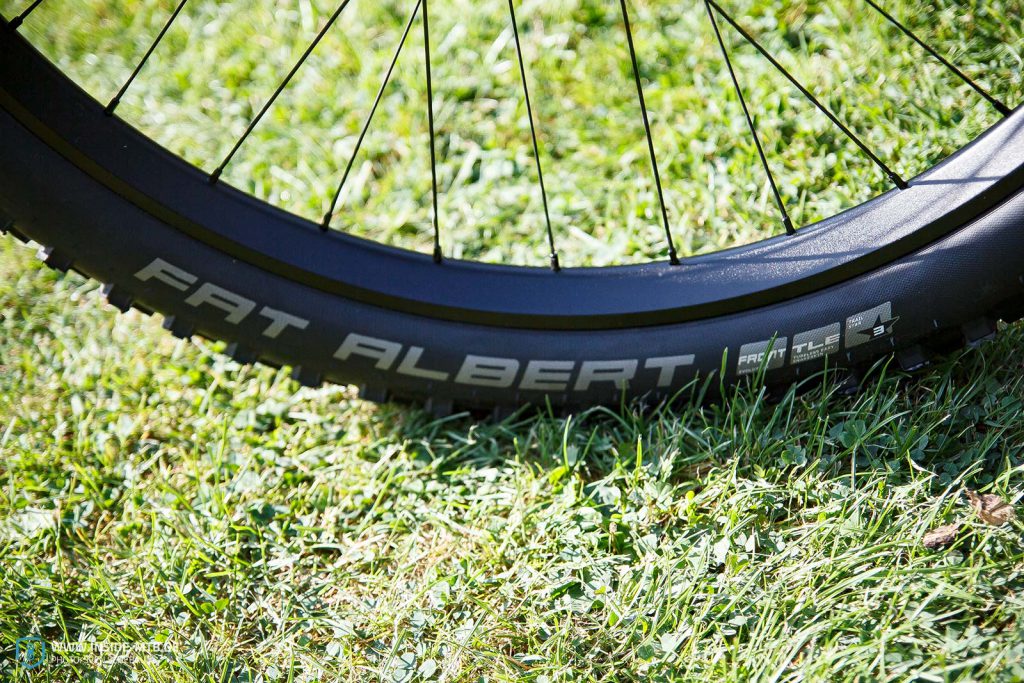 Unser Testsetup bestand aus den breiten Syntace W35MX Felgen und einem Satz Fat Albert für Front und Heck. Durch die extrem breiten Syntace W35MX Felgen baut der Reifen deutlich breiter. Wir sind die erste Hälfte des Tests mit einem „normalen“ Tubeless System gefahren. In der zweiten Hälfte des Tests wurde das Procore Doppelkammer System verbaut, dazu aber die Tage nähere Informationen.