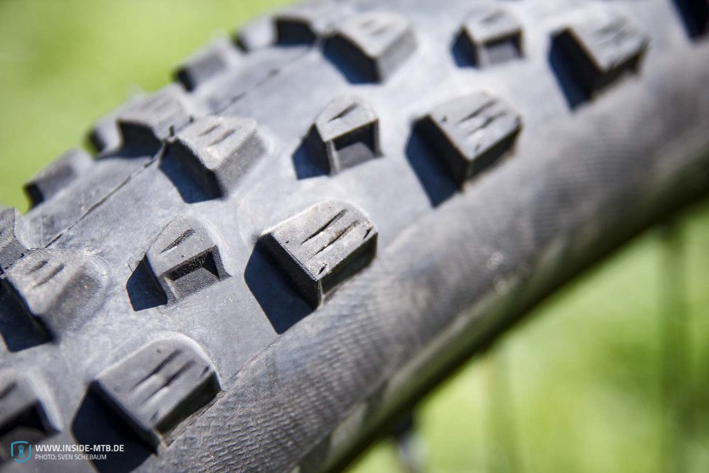 Beim Schwalbe Fat Albert Front sieht man, dass die Mittelstollen abwechselnd Rechts und Links angeordnet sind. Kombiniert mit den doppelt geschlitzten Seitenstollen verspricht das schon auf den ersten Blick viel Grip. Doch kann der Fat Albert auch auf dem Trail überzeugen?